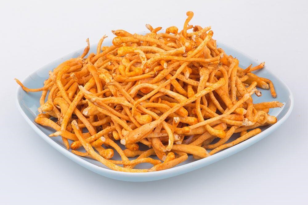 虫草花,学名“蛹虫草子实体”,隶属于子囊菌门肉座菌目虫草科虫草属,是人工培育的蛹虫草(与野生冬虫夏草同属不同种)的子实体,因形态酷似虫草、色泽金黄带白而得名。其